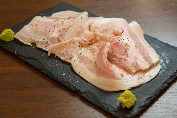 豚肉でありながら、脂身の融点がとても低くその脂はとても甘い香りがします。
